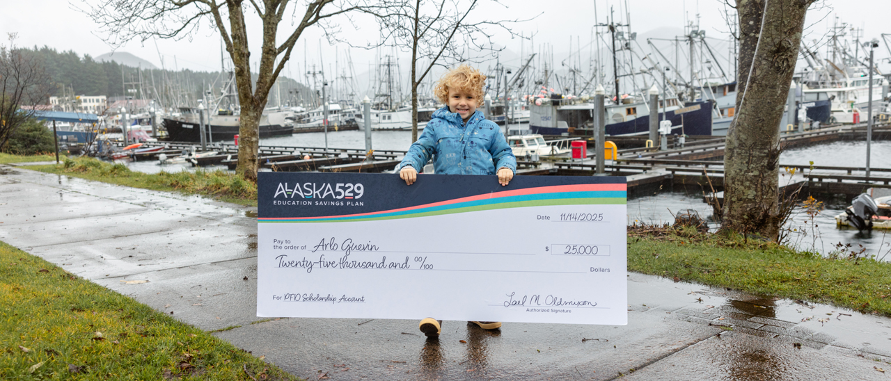 “This scholarship gives Arlo an incredible head start on his future,” said Lael Oldmixon, executive director of Alaska 529. “The opportunity to win is a great reason for Alaska families to save their PFDs for education. And at just 5 years old, Arlo has many years of potential growth before he graduates from high school and heads off on the next step in his education journey.”